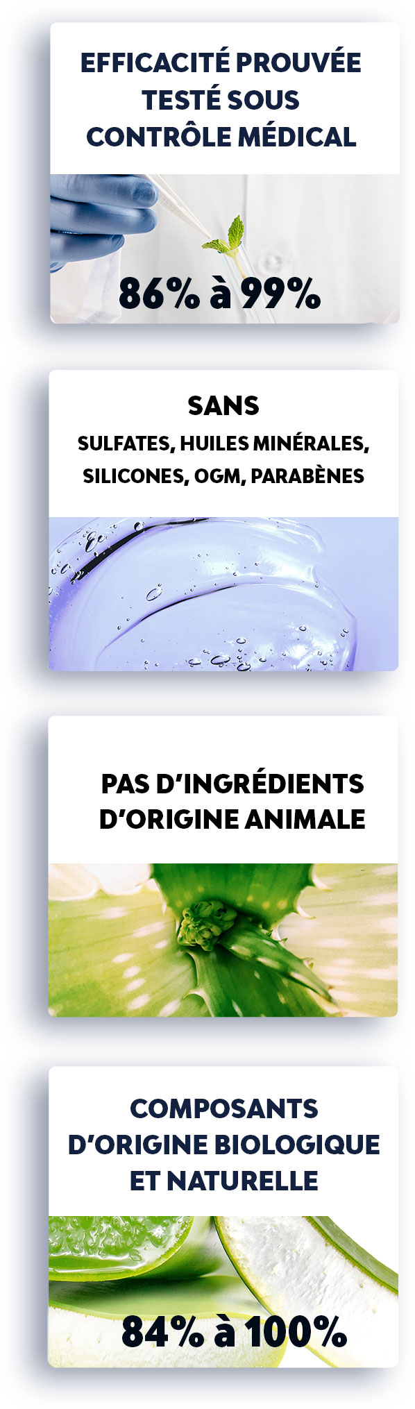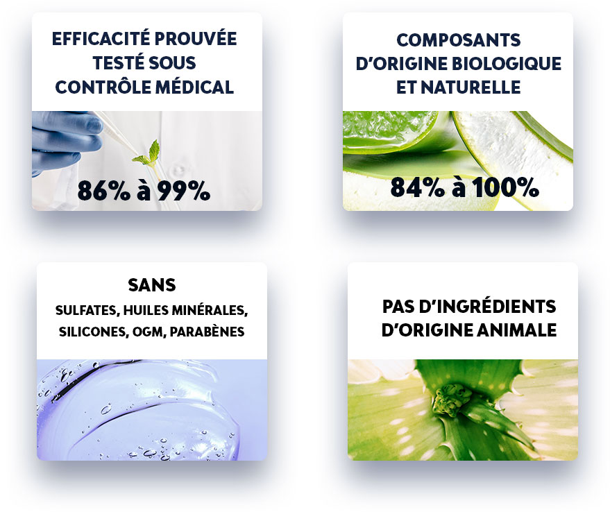 • Pour l’efficacité de nos traitements testés sous contrôle médical avec efficacité (86% à 99%) et approuvés par nos toxicologues avant mise sur le marché